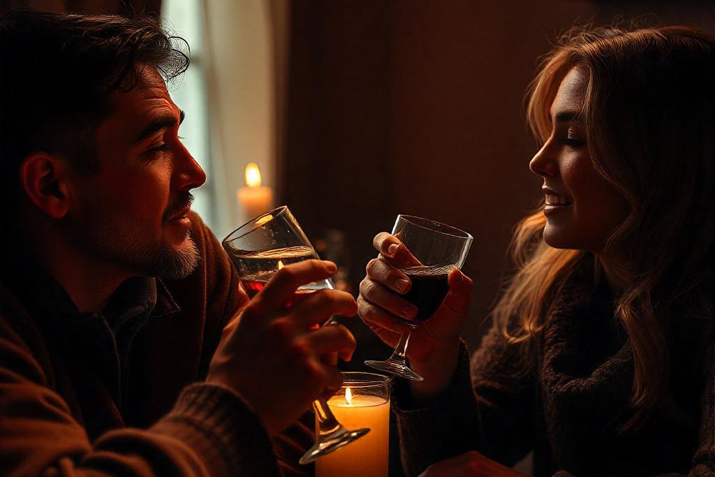 VaiUn'occasione intima e rilassante in un ambiente accogliente, come un salotto con luci soffuse e un camino acceso. Su un tavolino, sono disposte diverse bottiglie di amari, pronte per essere assaporate lentamente. Le conversazioni sono tranquille e confidenziali, mentre gli ospiti degustano i liquori, accompagnati da dolcetti. È una serata dedicata ai sapori intensi e complessi, perfetta per chi ama esplorare nuovi gusti in buona compagnia.